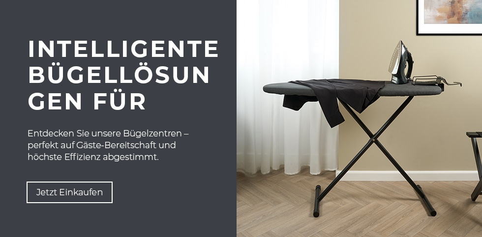 Als Experten für Textilpflege bieten wir attraktive Lösungen an, die funktional, langlebig und sicher sind. Von All-in-One-Bügelstationen bis hin zu kompakten Bügelbrettern. Wir sind überzeugt, dass wir die ideale Kombination anbieten, die perfekt in Ihre Hotelzimmer passt.